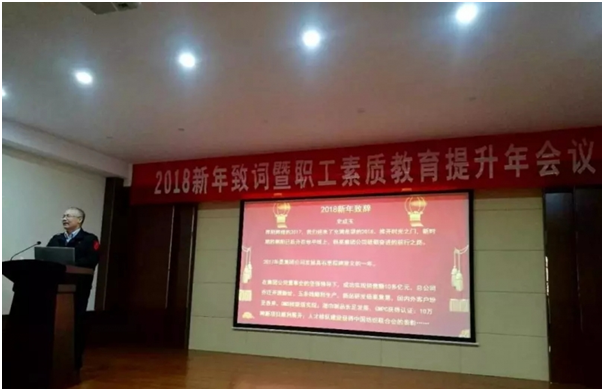 最后,董事长史成玉作了2018新年致词暨职工素质教育提升年动员报告,挥别辉煌的2017,迎来充满希望的2018。2018年是集团公司职工素质教育提升年,董事长史成玉对员工素质教育提升年的战略意义及工作计划作了详细解释。祝愿我们集团公司的每一位员工,在奋斗中成就更好的自己,祝愿集团公司在我们的共同奋斗中开创更加辉煌的未来!