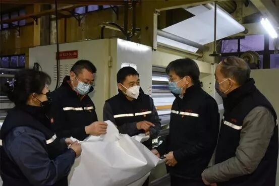 2月5日,国家工信部督导组莅临山东永信公司督导新型冠状病毒防疫物资生产及保障情况。督导组强调了供应链生产注意事项,要关注上下游企业运行,深入生产现场了解产能和生产,进一步明确山东永信作为医用防护原材料生产企业,是工信部统一采购调配物资的重点单位。要求该企业全力以赴保生产保供应,当地政府要千方百计帮助企业解决实际困难。山东永信自1月29日提前复工生产以来,生产线已全部开启,员工激情高涨,工作秩序良好,产品质量稳定,为消杀湿巾、口罩内芯及防护用品企业提供优质非织造布原料,为打赢疫情防控攻坚战贡献力量。